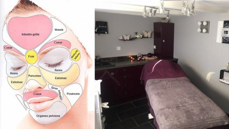 - Pose d'un masque d'argile : 6 couleurs différentes d'argile mélangés à des huiles essentielles correspondant aux différentes zones du visage et aux organes reliés par les fameux méridiens énergétiques.